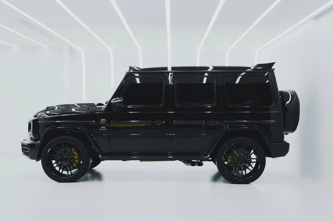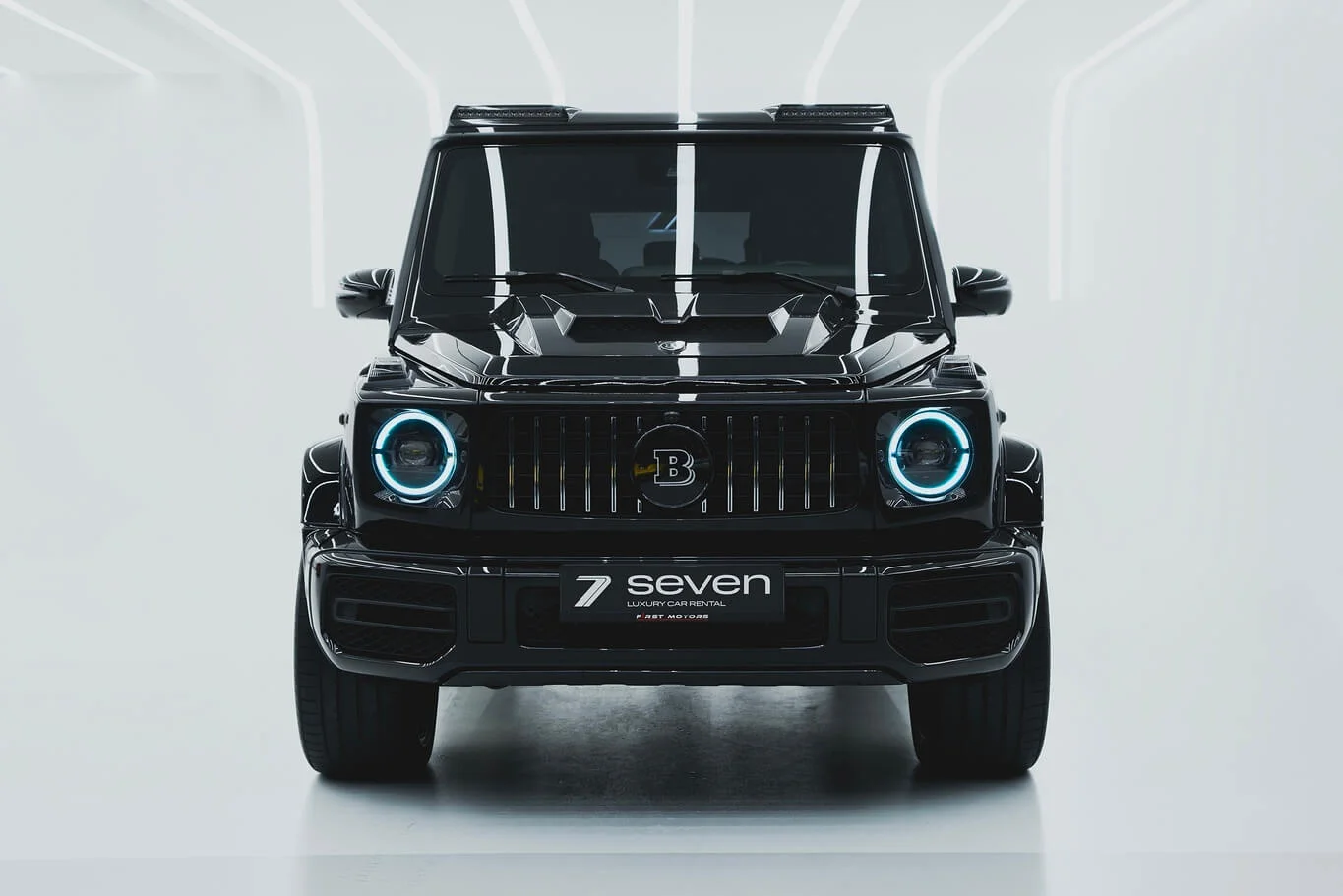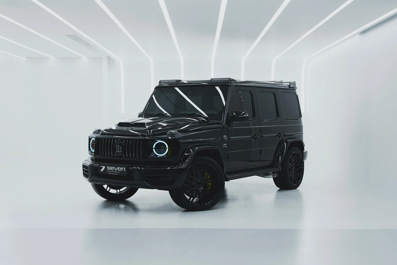 Black Brabus G-class with a bold squared silhouette and powerful tuner presence. Pricing changes automatically by rental duration.