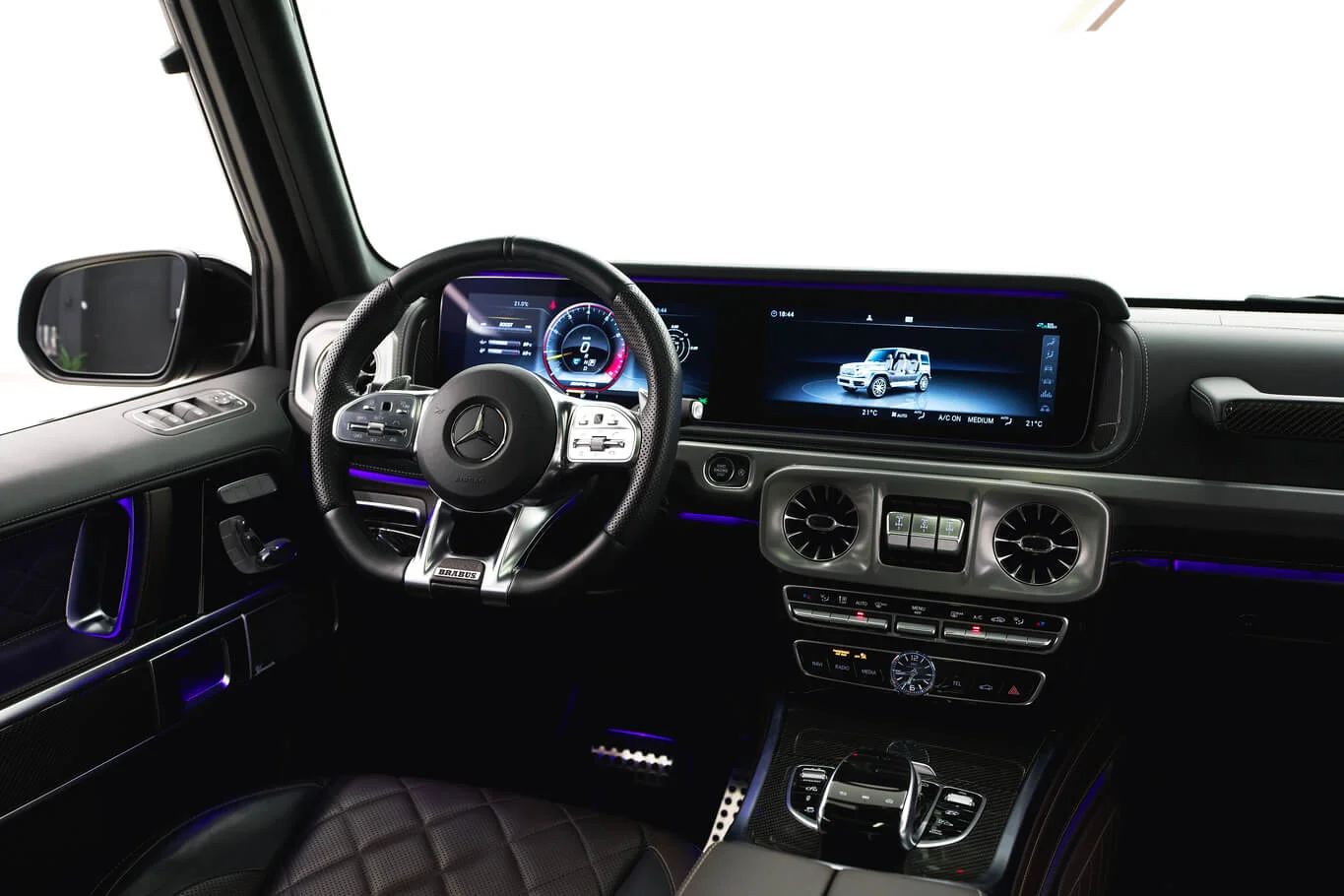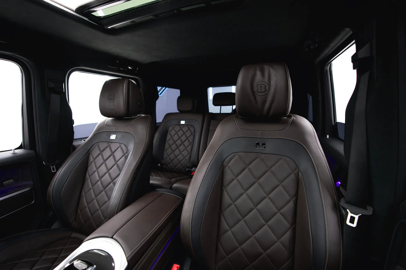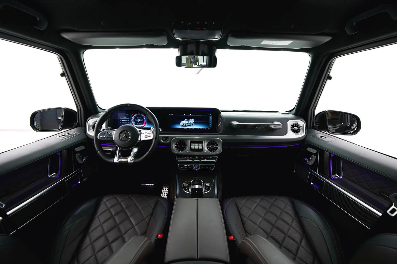 Black Brabus G-class with a bold squared silhouette and powerful tuner presence. Pricing changes automatically by rental duration.